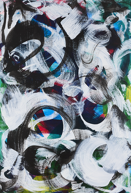 작가의 화폭에서 느껴지는 듯 한 베이스 기타의 은은한 울림, 징 소리의 격렬함처럼 색과 선은 관람자의 감각 속에서 자유롭게 움직입니다.