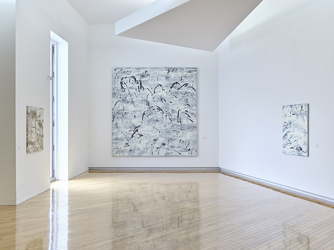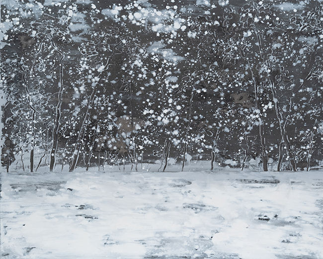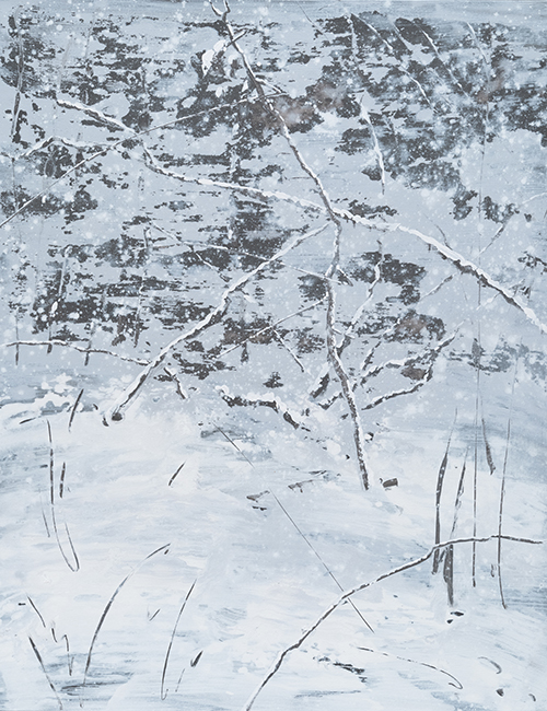 작가가 오랜 시간 탐구해 온 화법은 단색조를 기반으로 하기에, 그 재료가 변주되는 과정이 더욱 선명하게 드러난다. 초기의 풍경들은 빠른 필획과 뿌리기로 거칠게 휘몰아치는 숲의 바람을 담아냈다가도, 하얀 물감을 물로 뭉근하게 씻어 내어 안개 낀 듯 몽환적인 설경을 그리기도 하는 등 격정적이고 변화무쌍한 양상을 보여 준다.(「풍경」, 2008년 등) 작품은 작가의 심경을 솔직히 담아내는 기록으로도 보인다. 평생 살아 익숙한 지역을 떠나 제주라는 생소한 환경에 머무르며 썼던 일기는 캔버스 위에서 글씨로 표현되기도 하였다.(「제주일기」, 2011년 등) 작가는 일상에서 발견한 자연의 아름다움과 세속의 추함을 마주하며 그것에 반응하는 자기 내면에 집중하여 그림으로 담거나 가끔 일기나 편지의 한 구절처럼 제목을 짓기도 한다. 세상에 염증을 느끼며 그린 작품의 제목을 <어디서 무엇이 되어 다시 만나지 말자>로 지어 시인인 친우에게 보내자 그 화답으로 온 말을 제목으로 삼은 「그래도 볼 수 있을 때 봅시다」(2025)는 자신의 그림을 다시 새롭게 바라보게 된 (의도치 않은) 경험이 담겨 있다. 일상에서 나눈 대화가 작품을 그려 낸 과정과 겹치며, 삶 속에 작품을, 작품 속에 삶을 중첩시키는 작가의 모습 역시 그곳에 비친다.