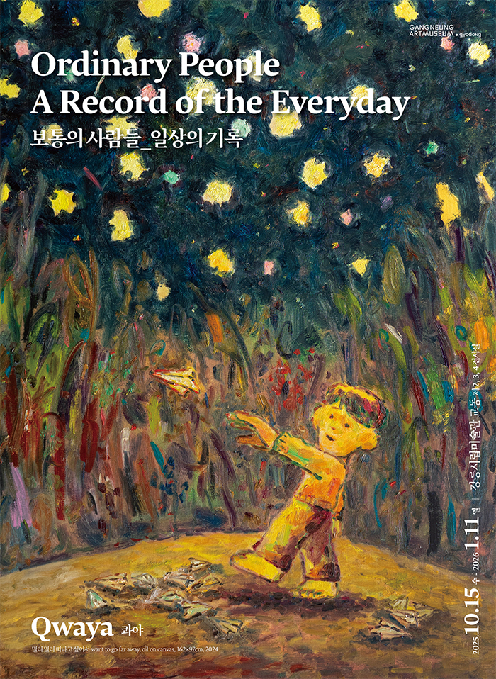Gangneung Museum of Art Gyodong presents the solo exhibition Ordinary People_A Record of the Everyday by Qwaya, an artist who paints scenes from daily life. Qwaya is an art name (ah-ho, 雅號) created by the artist by combining the Sino-Korean character “gwoya,” which means “to spend the night,” with the letter ‘Q’ from the English word “quiet.” This evocative name, which the artist gave himself as someone who often spends nights in contemplation and working, carries the meaning “Contemplation of the Night.” For Qwaya, nighttime is a crucial time when emotions are heightened, introspection deepens, and artistic appreciation develops.