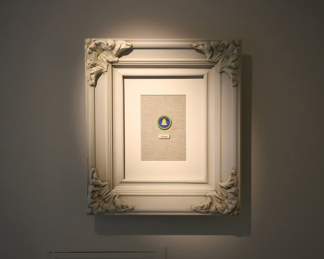 〈Action (실천)〉, Oil on linen, Cotton mat, Museum acrylic, Solid wood frame, 39(l)x44(h)x7.5(d)cm, 2024