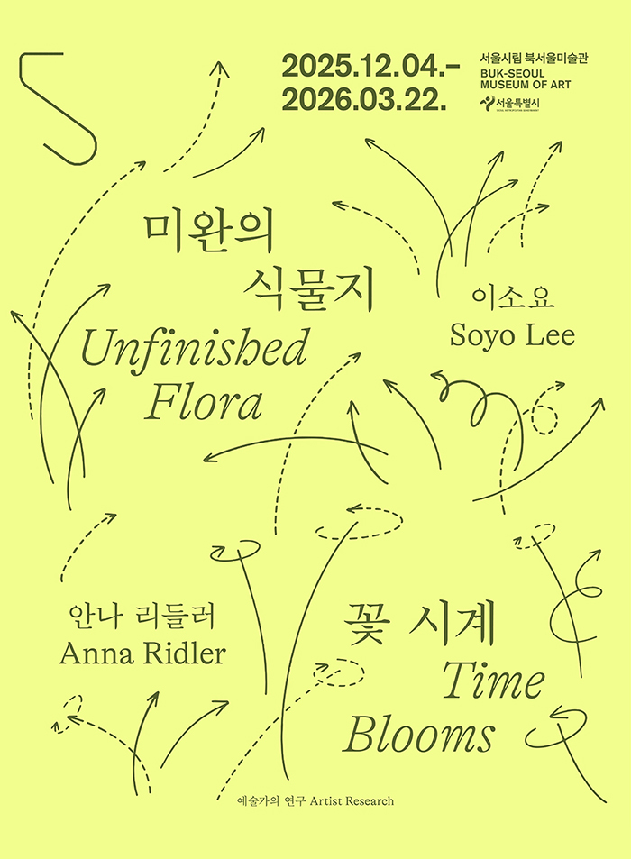 서울시립 북서울미술관의 ‘예술가의 연구’ 시리즈 《미완의 식물지―이소요》, 《꽃 시계―안나 리들러》는 미술사·자연사·생물학·지리학·인공지능 등 다양한 학술 및 기술 영역을 넘나드는 독창적 방식으로 정교하게 축조된 예술가들의 연구에 기반한 창작 세계를 소개하는 전시이다. 작가들은 연구를 단순한 창작의 보조적 요소로 다루지 않고, 긴밀히 맞물린 하나의 축으로서 연구와 창작이 함께 작동하는 방식을 보여준다. 연구-창작의 축은, 타 분야와 예술을 연결 짓는 작업이 가져오는 또 다른 축인 예술-학술, 예술-기술의 축과 교차한다.